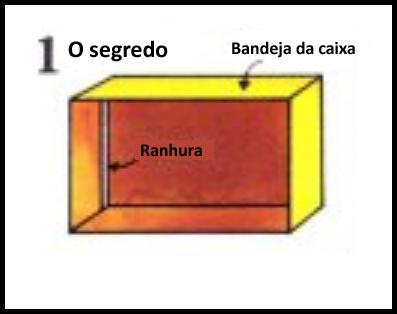 Primeiro de tudo tire a bandeja da caixa. Corte uma ranhura da largura no fundo e esconda uma moeda grande na bandeja.