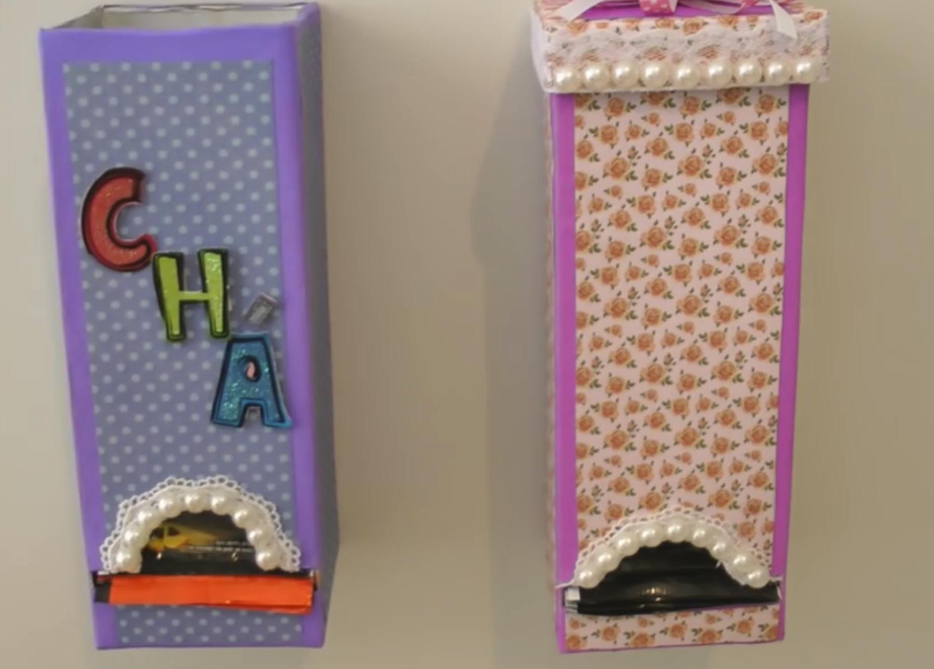 Se quiser pode aproveitar os restos da caixa de leite para fazer um batedor de porta, ou se preferir pode fazer uma carteira bem legal.