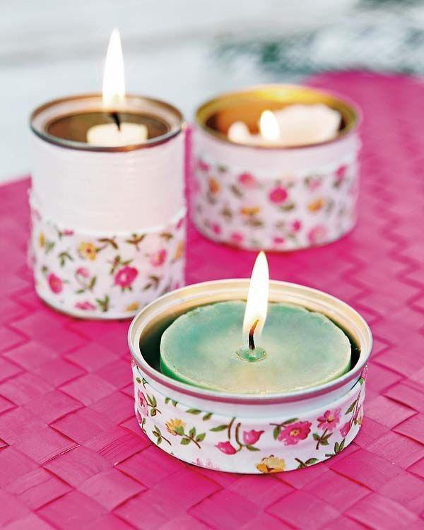 Se prefere o retrô, então basta pegar em todas essas latas vintage que tem em casa e preenchê-las com velas à medida. Aqui o verdadeiro trabalho será elaborar a vela, mas para o conseguir só vai precisar de um pouco de habilidade e seguir em detalhes os passos que explicamos a você no nosso artigo como fazer velas artesanais.