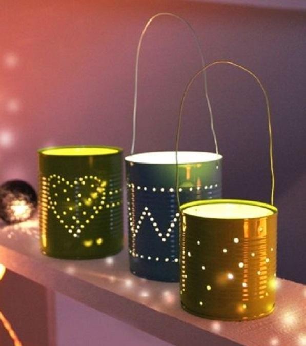 Depois, só falta pendurar as latas no espaço da sua casa que mais agrade você e preencher com uma vela individual por lata. Acenda em uma noite especial e surpreenda todos.