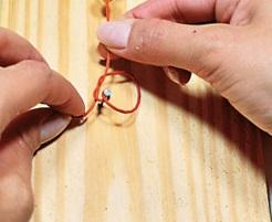 Comece por fazer um nó perto da ponta do cordão, deixando um pouco de fio para depois fazer o laço com a outra extremidade.