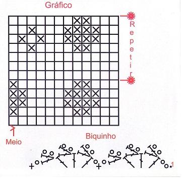 Faça crochê filé por 44 carreiras e volte às 5 primeiras carreiras para as trabalhar.