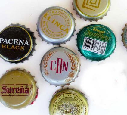 A primeira coisa que temos que fazer é juntar um monte de tampinhas de cerveja; estas tampinhas serão o corpo do nosso boneco de neve.
