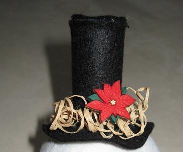 Para continuar a decoração, você deve pegar uma peça de feltro preto e cortá-la como se fosse um T invertido, isto será o gorro do boneco. Você pode decorá-lo com algum enfeite, mas deixamos isto para os mais habilidosos.