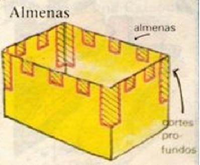 Muralhas: utilize uma caixa grande de papelão para fazer a torre. As muralhas devem ser recortadas na extremidade da caixa. Em cada canto deve fazer uns cortes mais profundos.
