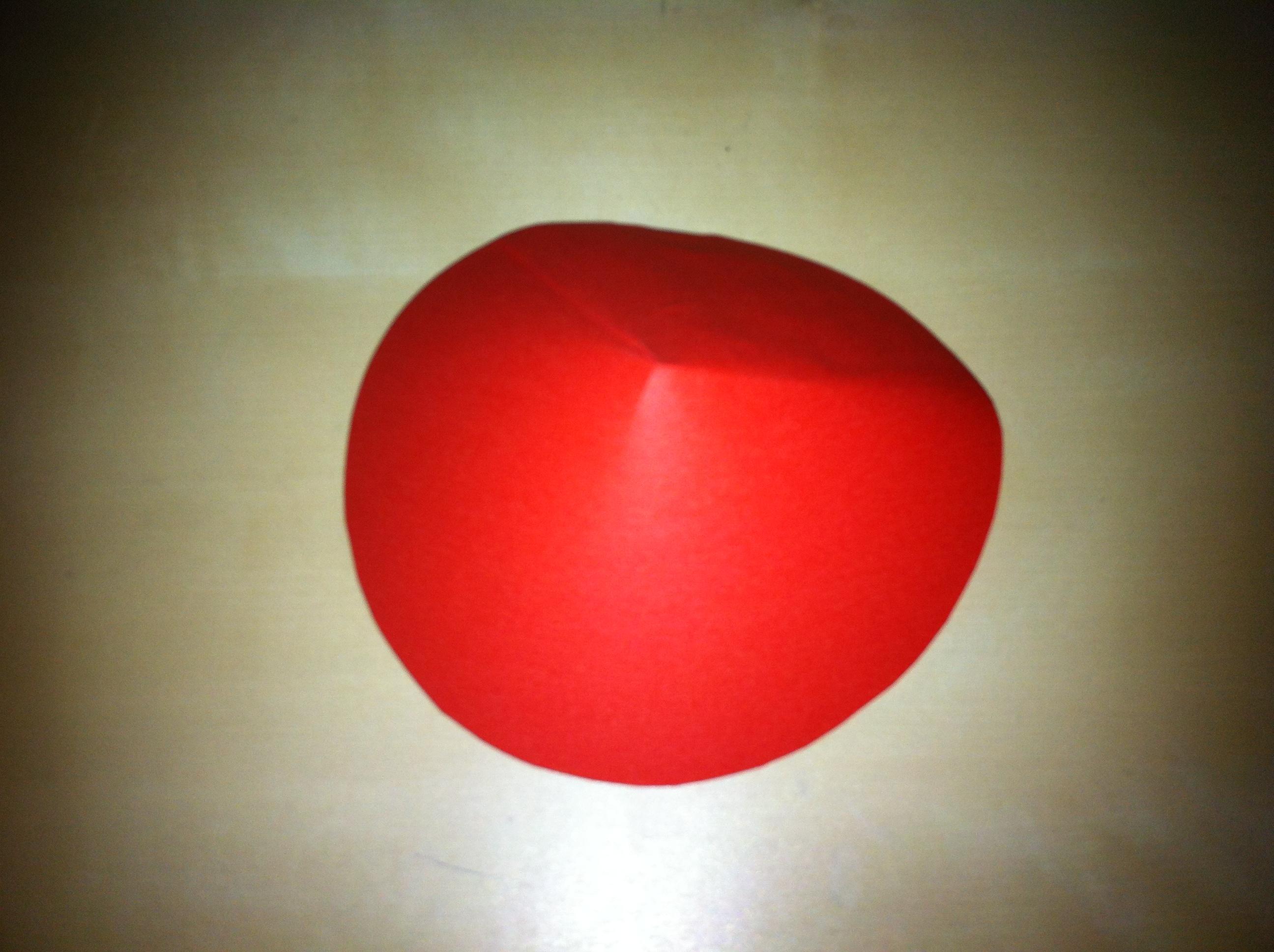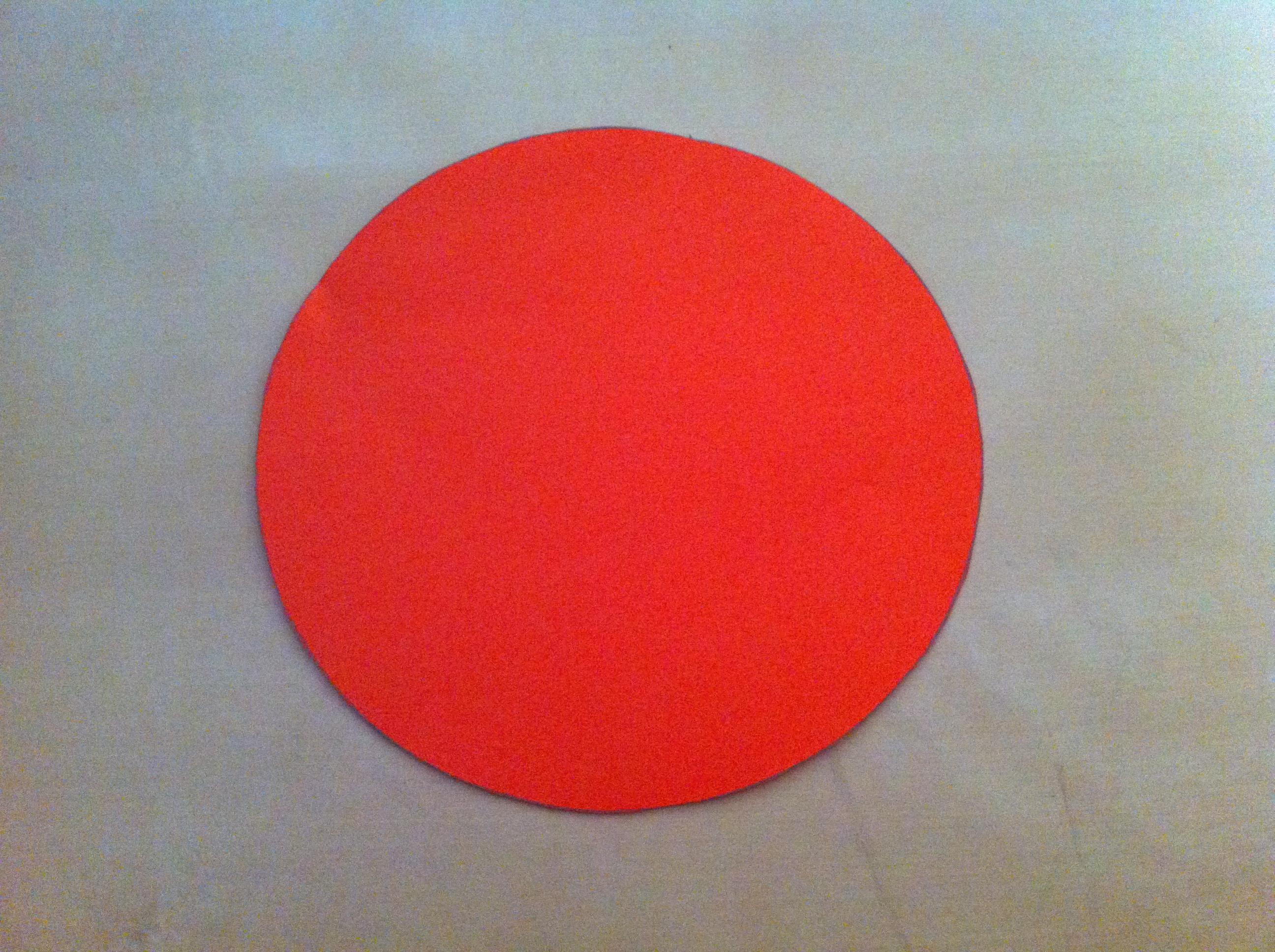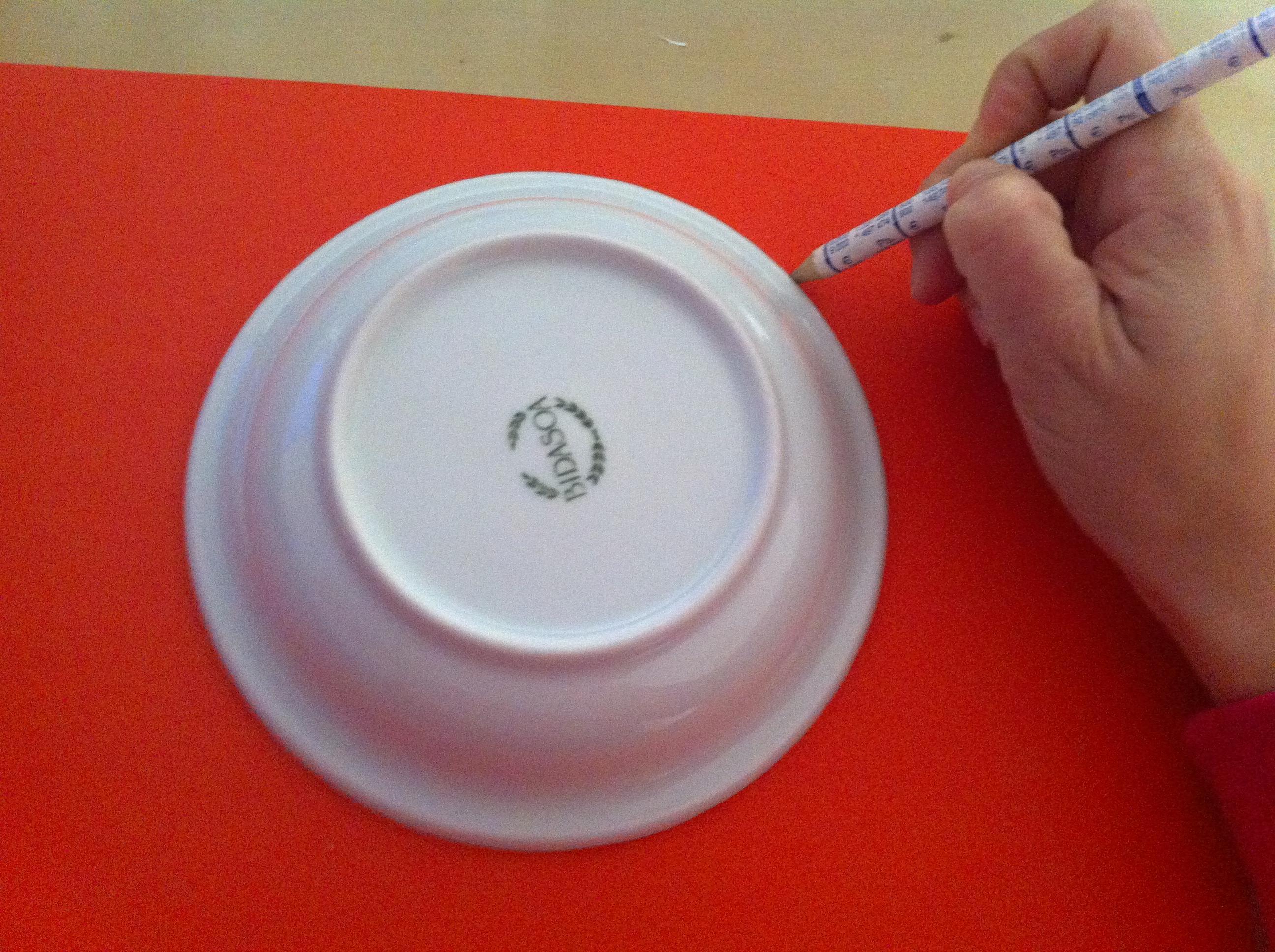 Pegue um recipiente com forma redonda ou um compasso para fazer um círculo em uma folha de cor vermelha (nós pegamos uma tigela).