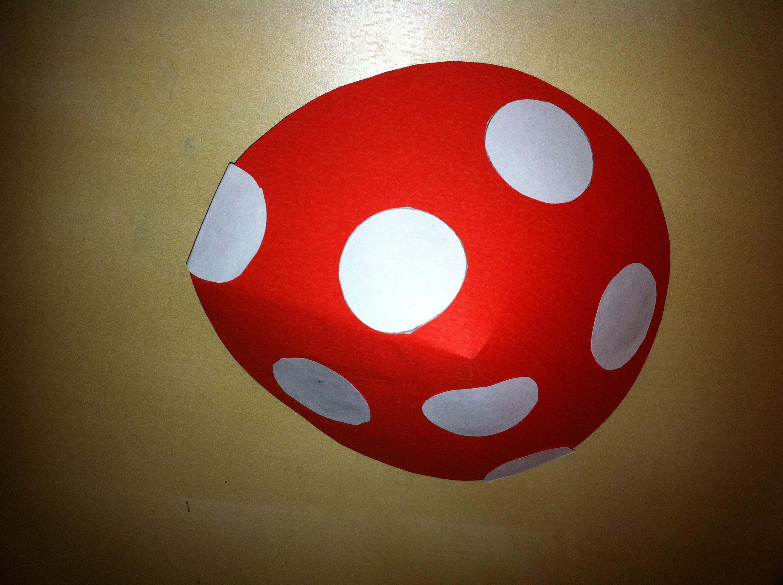 Agora só faltará pôr a parte de cima do cogumelo em cima do rolo de papel higiênico e pronto! Você já tem seu cogumelo pronto!