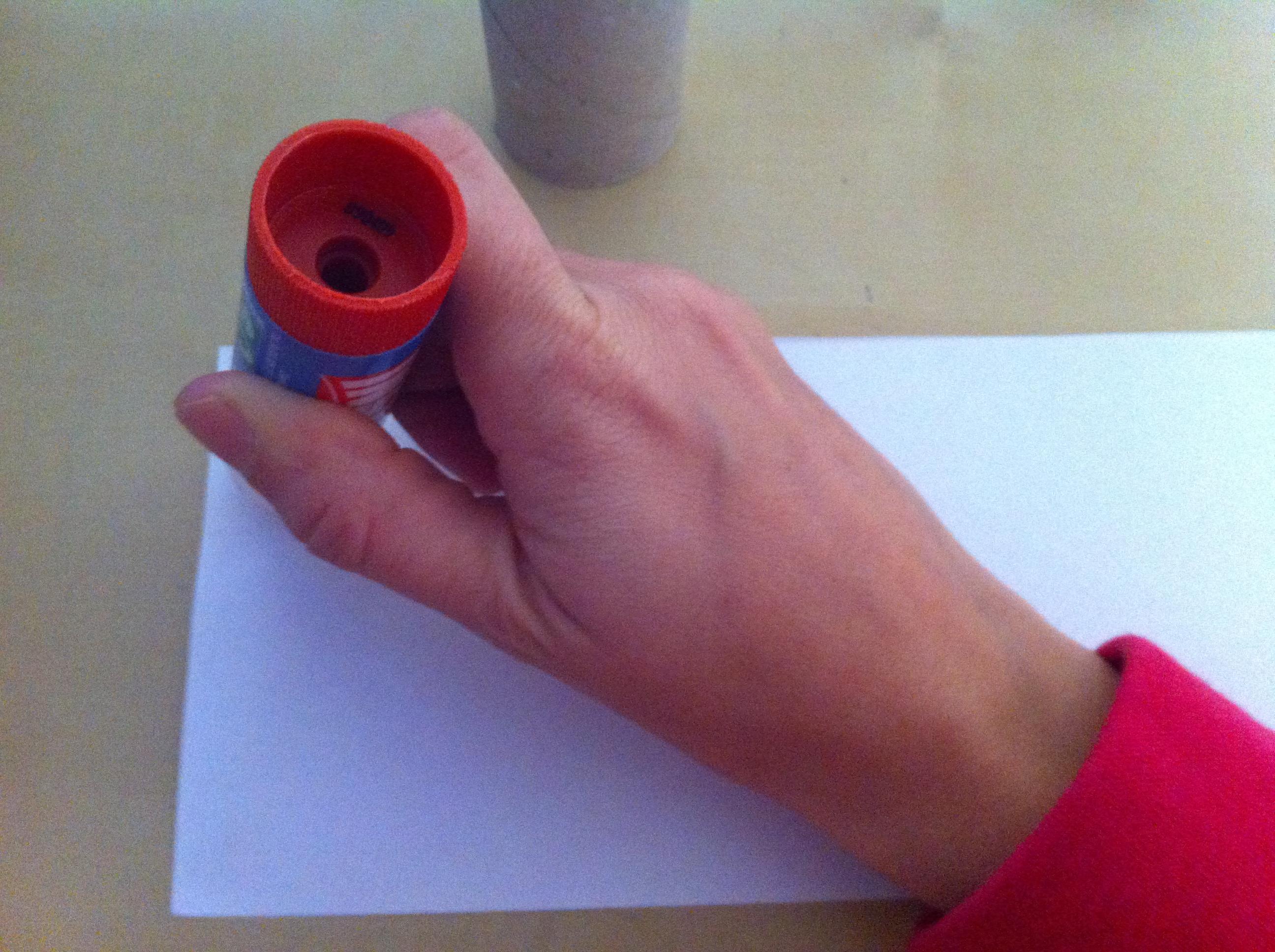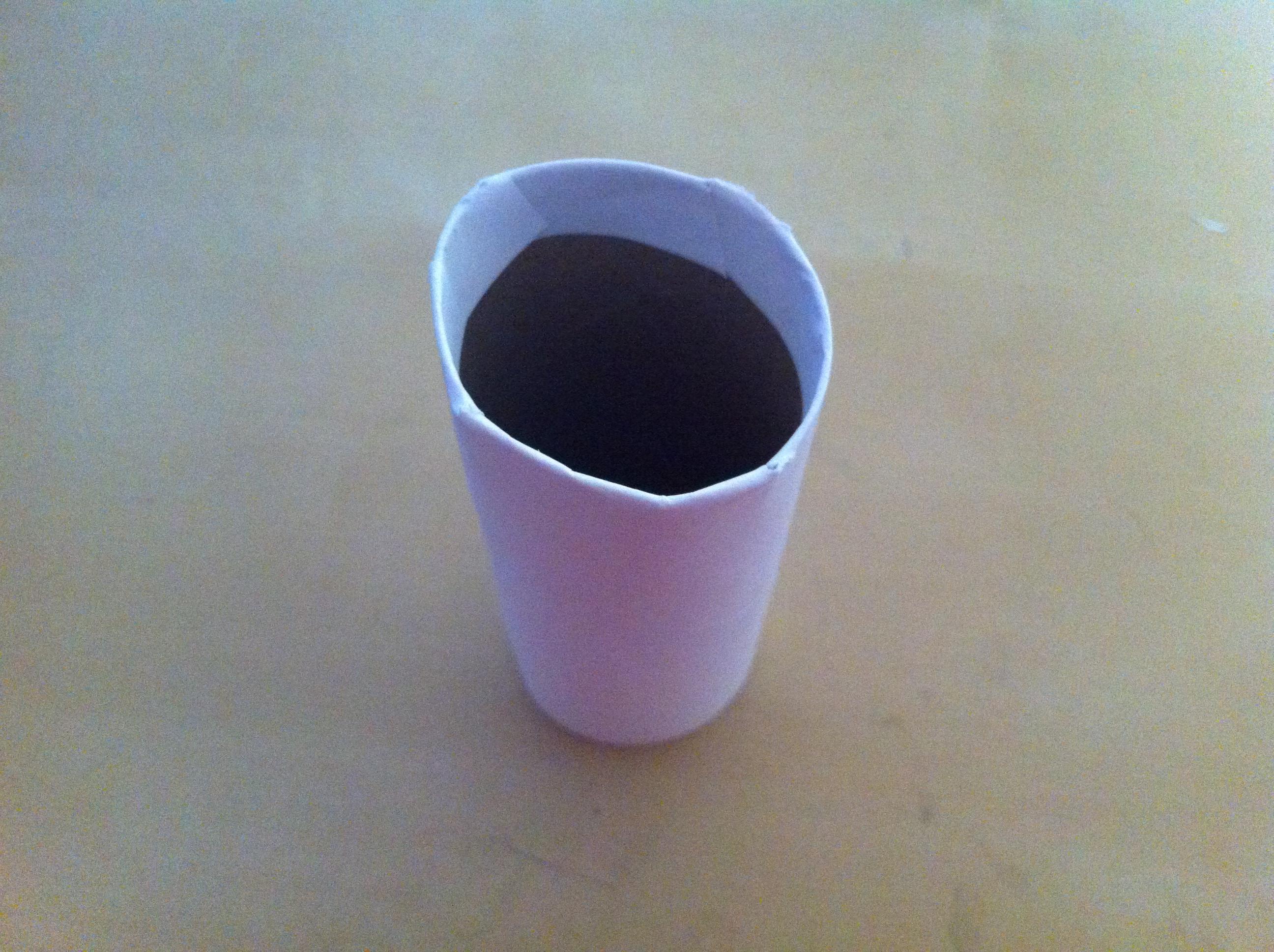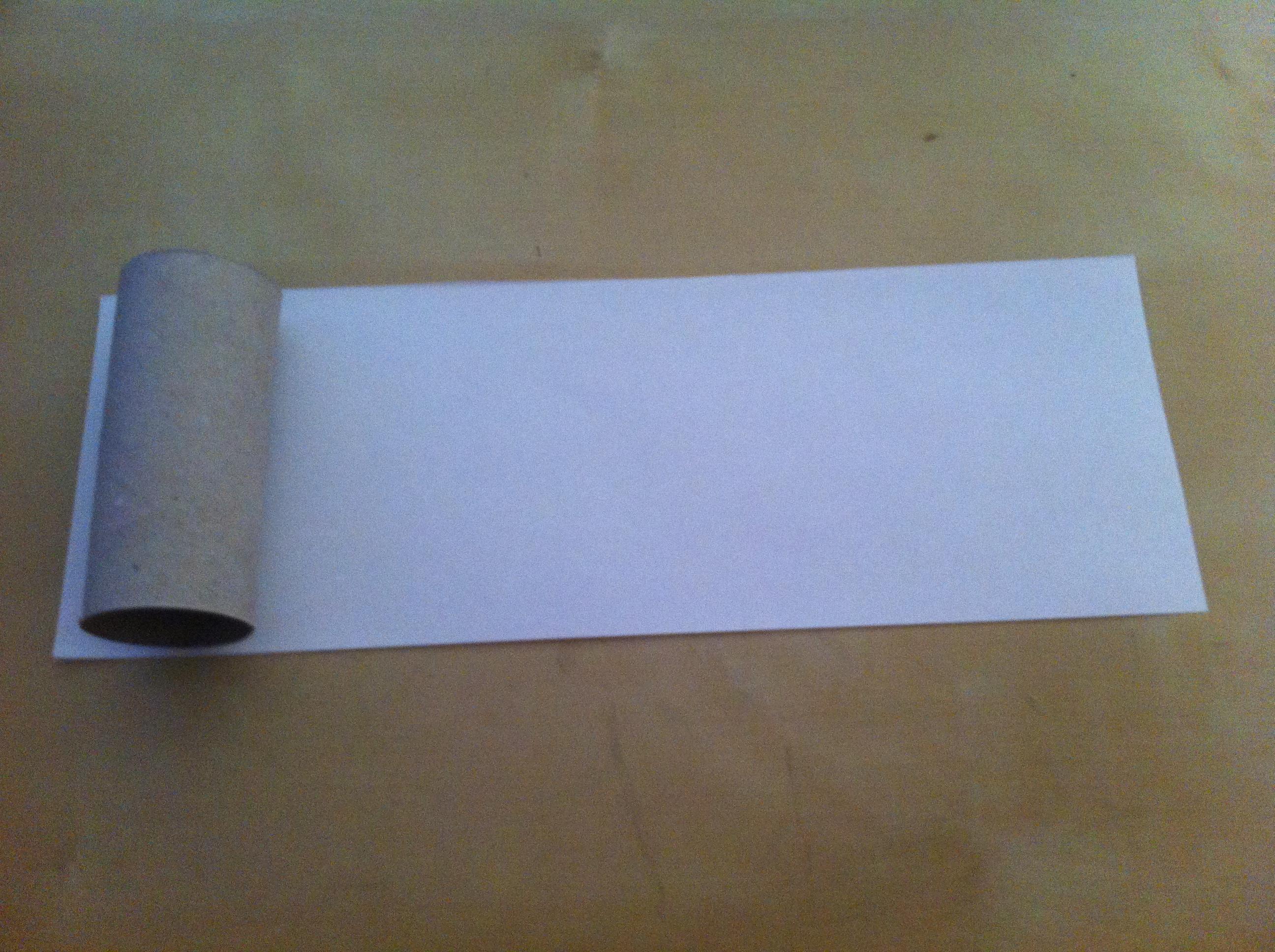 Pegue um rolo de papel higiênico terminado e meia folha tamanho A4 cortada na horizontal.