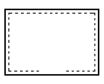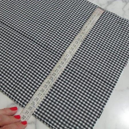 Para coser os dois tecidos, o da parte de cima e da parte de baixo, una-os com as faces do padrão ou da cor mais viva viradas uma para a outra e com um pedaço de feltro para enchimento, com a mesma dimensão, sobre um dos tecidos. Em seguida cosa na máquina de costura deixando um espaço de cerca de 5 cm entre a linha e a borda do tecido, e uma abertura de 15 cm sem linha em uma das bordas (observe o esquema ao lado, em que o tracejado representa o que deve ser cosido).