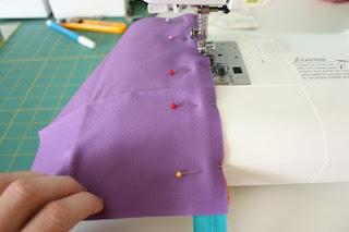 O próximo passo é coser todo o tecido. Certifique-se que os alfinetes ainda estão bem colocados e que todos os tecidos estão alinhados e vire-os do avesso, deixando-o para cima.