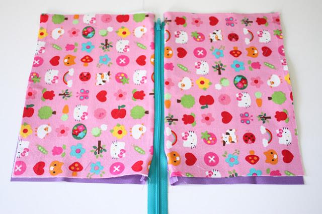 Depois de ter cosido todo o tecido, vire-o do lado certo e feche o zíper.