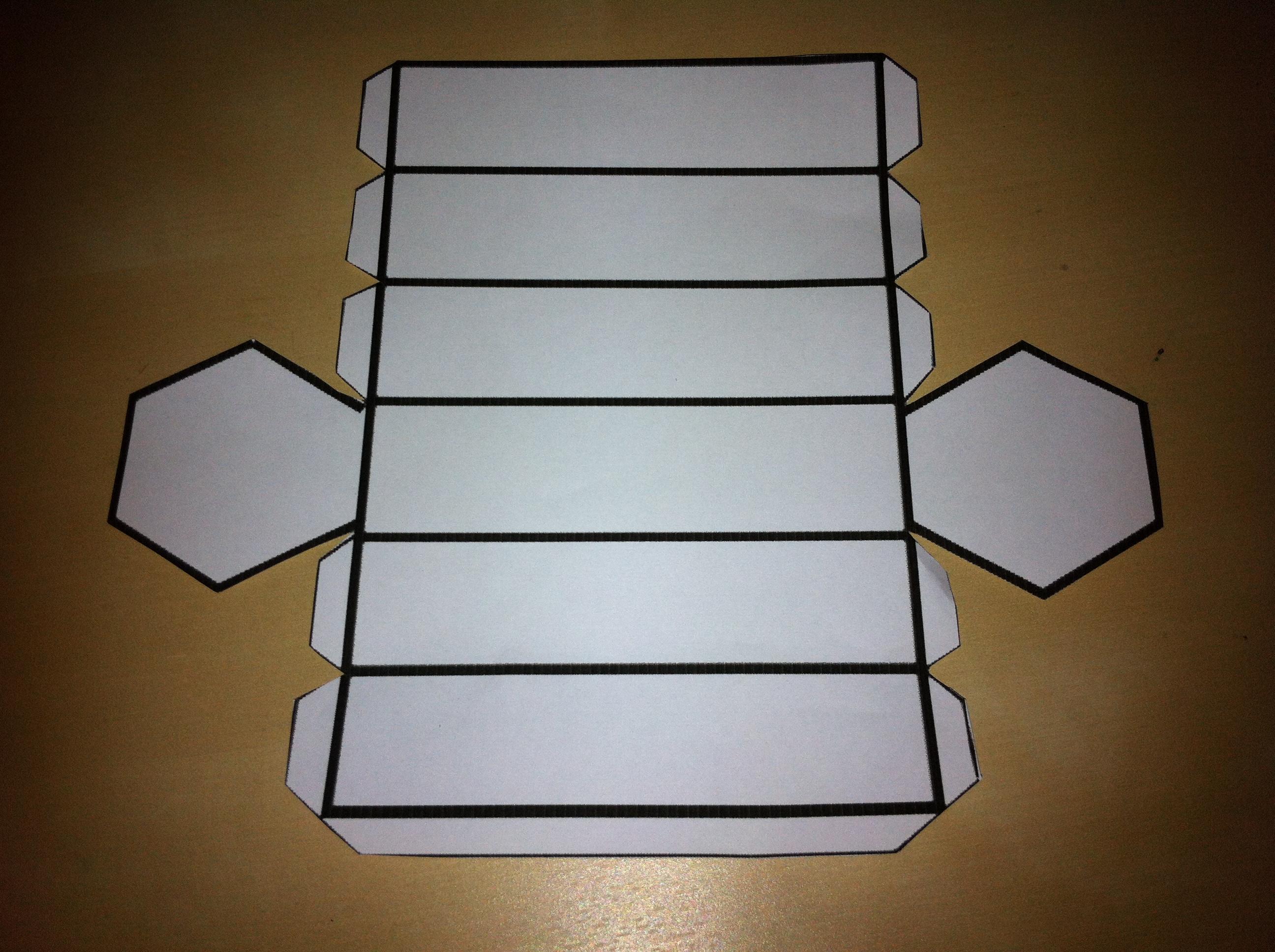 Copie este modelo do prisma com base hexagonal para um papel, cartolina ou papelão.