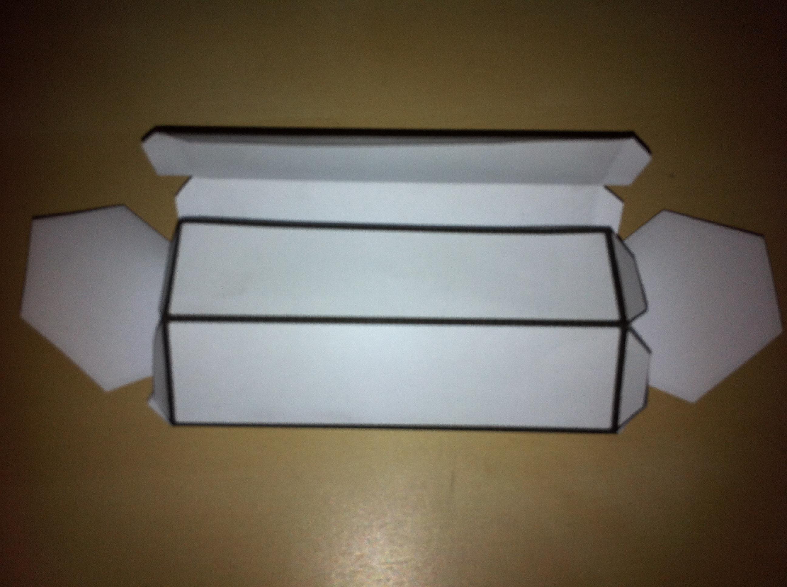 Dobre todas as linhas do modelo. Tente montar o prisma antes de colocar cola para ter uma ideia de onde encaixa cada aba.
