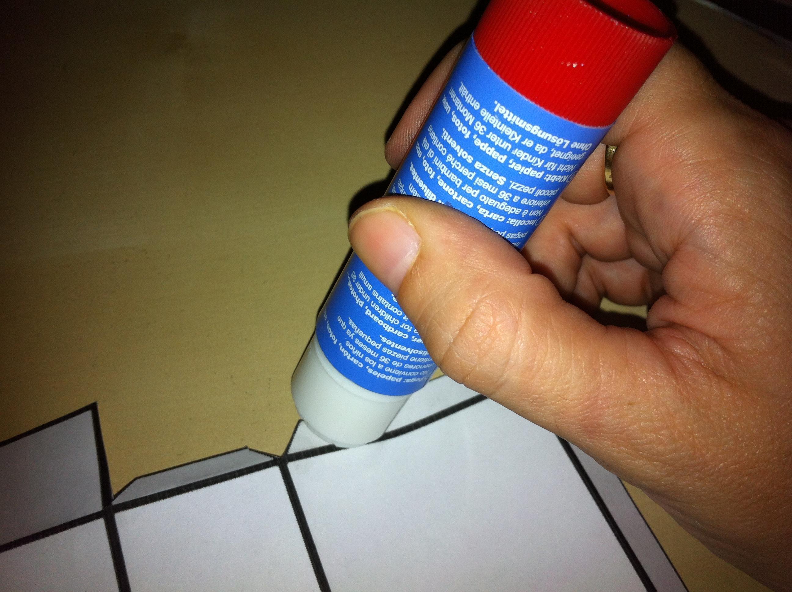- Recomendamos que antes de começar a pôr cola, tente montar o prisma para entender onde tudo se encaixa. Se vir que já percebeu comece por colar uma aba. Faça isso sucessivamente com o resto das abas.