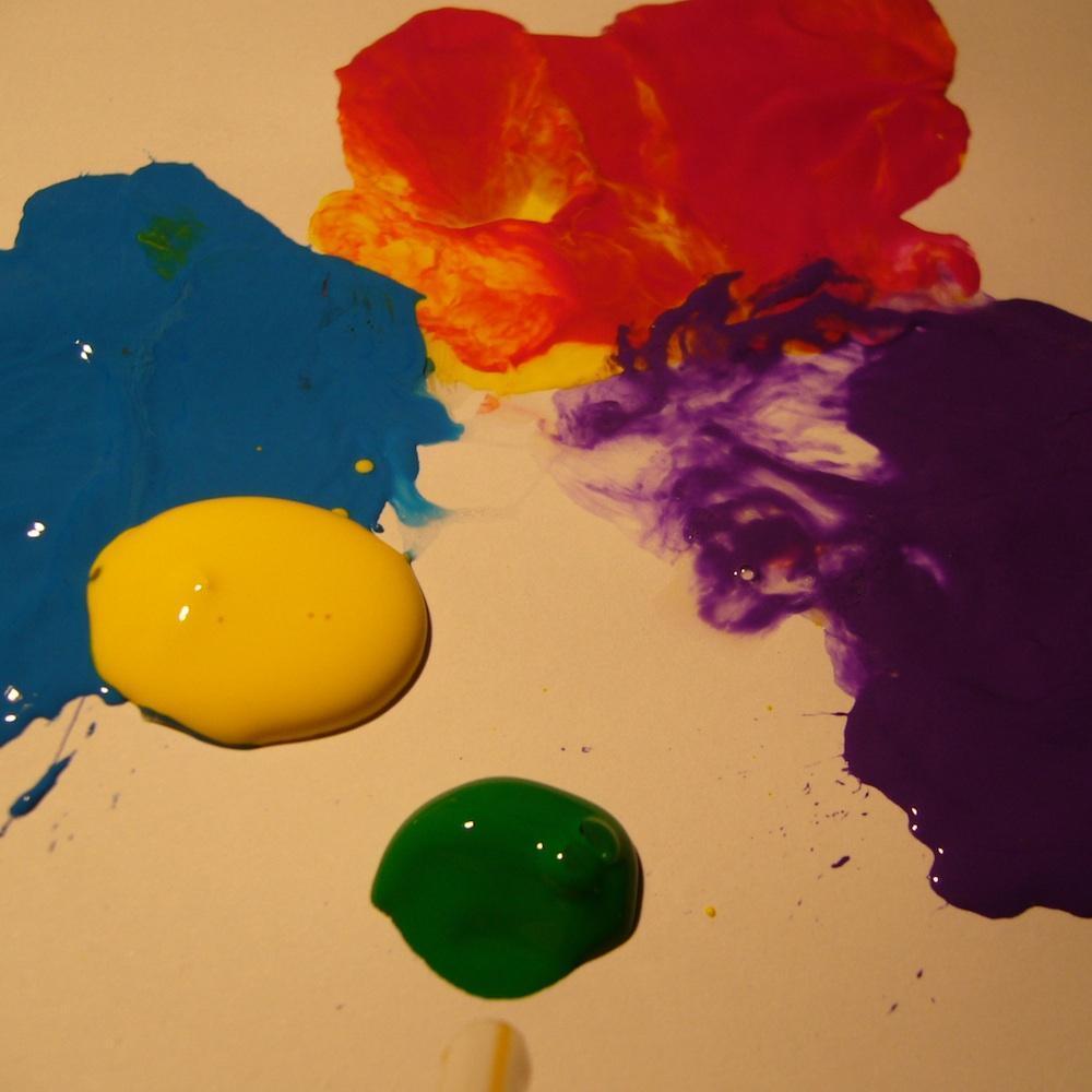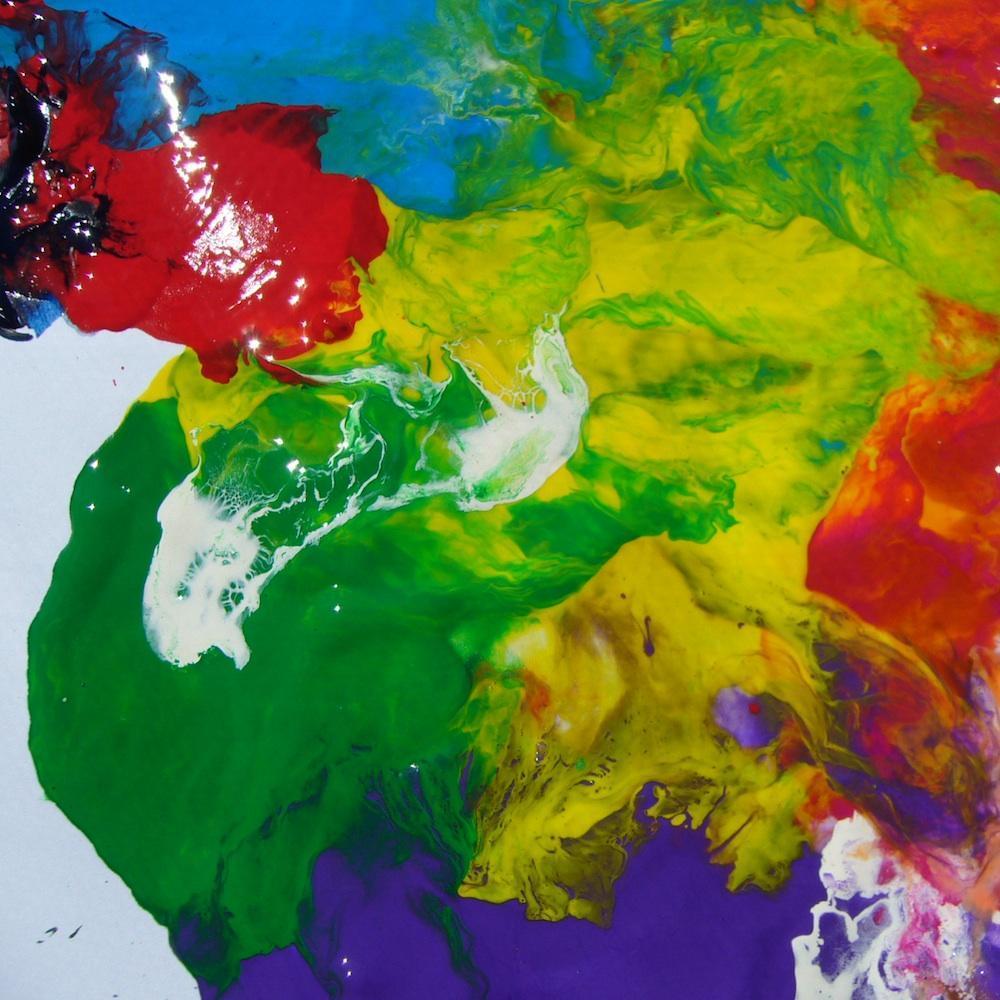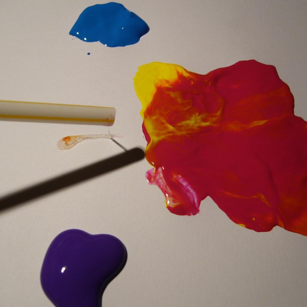 Vá colocando várias tintas de diferentes cores e sopre para que as cores se misturem, criando assim um quadro abstrato.