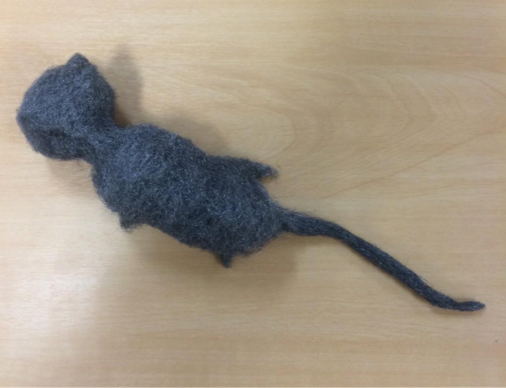 De forma semelhante faça o nariz do rato, puxando na extremidade onde é a cabeça um pouco da lã de aço.