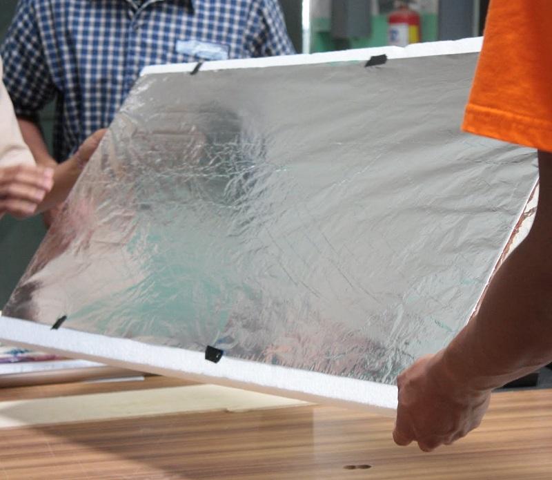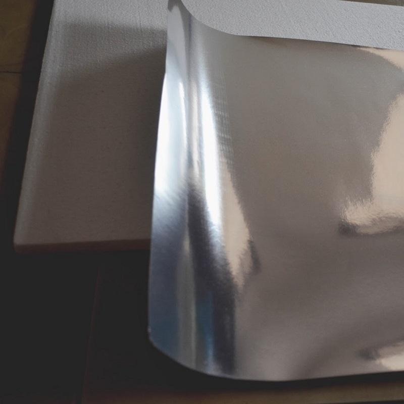 Corte a placa de isopor ou papelão na medida pretendida e também a folha de papel laminado.
