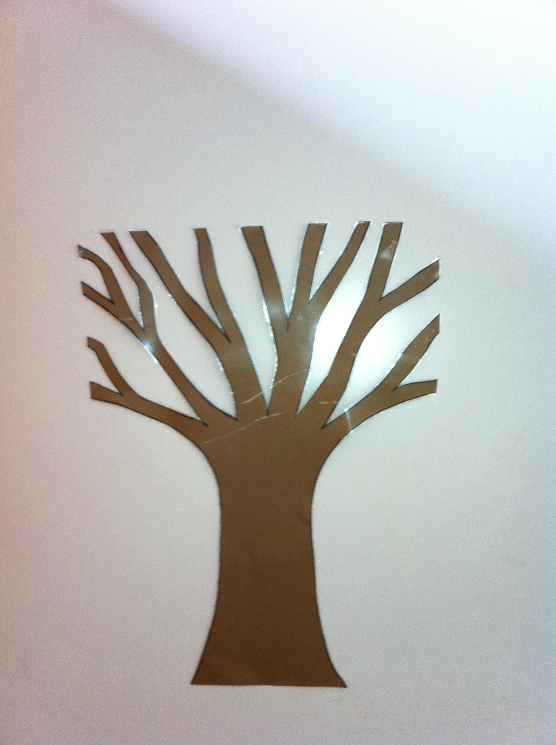 Pegue numa cartolina castanha grande e desenhe o tronco de uma árvore com diferentes ramos.