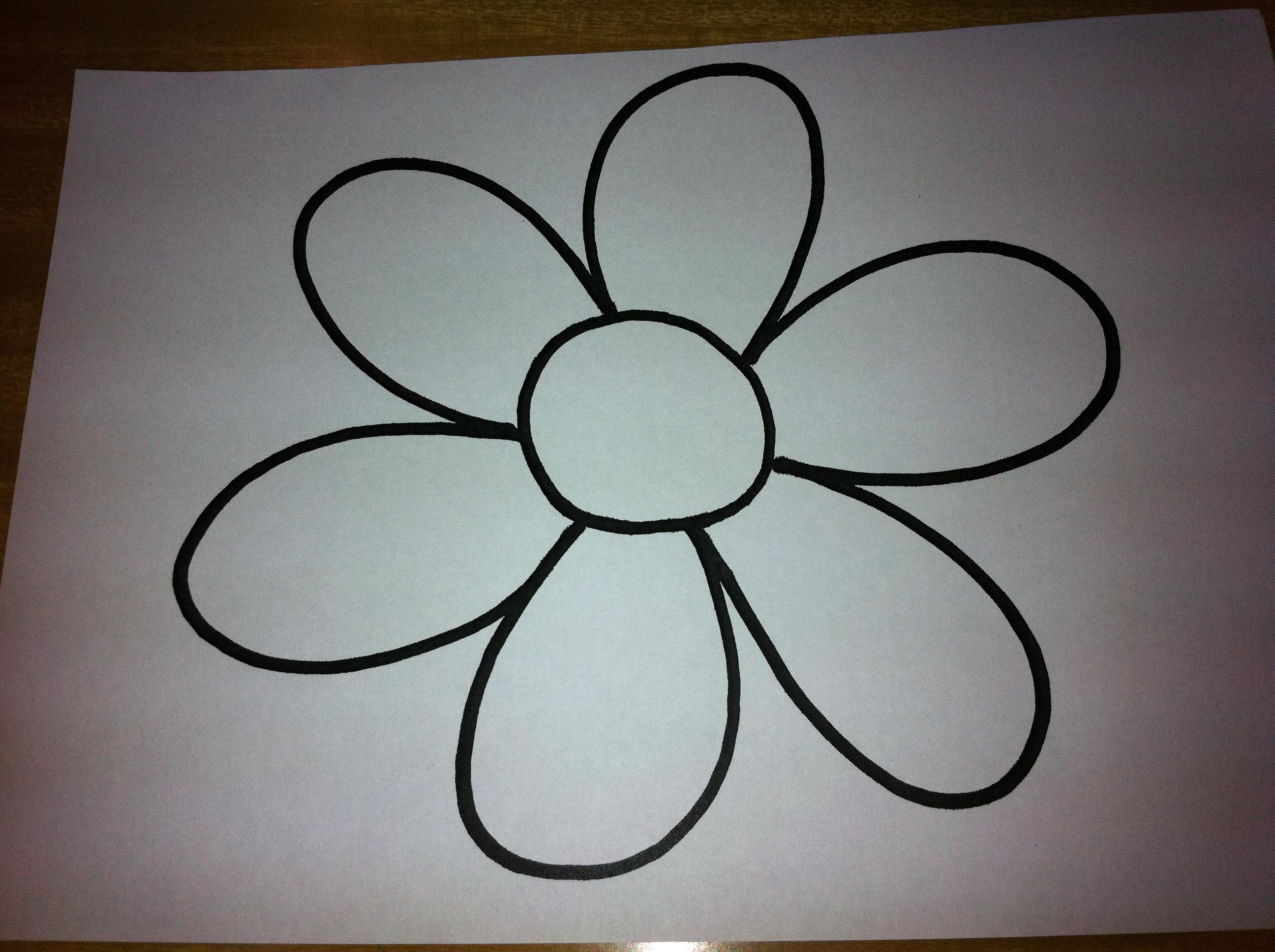 Desenhe flores num papel ou cartolina branca com um marcador preto. Se quer que fiquem todas iguais, desenhe uma e depois tire fotocópias. Se não é muito bom a desenhar, escreva flor colorir no google (encontrará muitas opções que poderá imprimir).