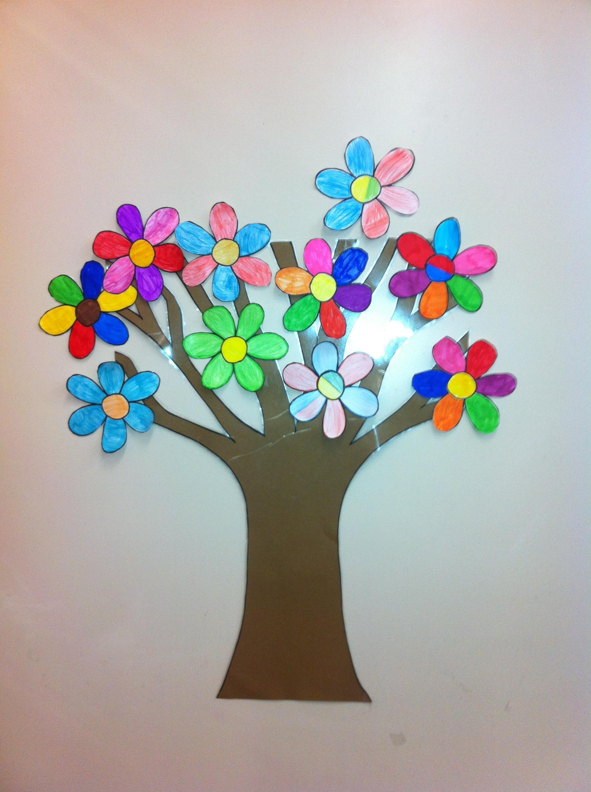 Acabe de colocar todas as flores e ficará com uma preciosa árvore de primavera para decorar qualquer parede da sua casa ou sala de aula.