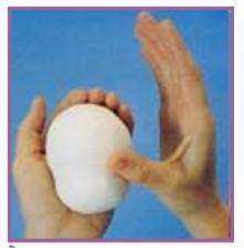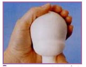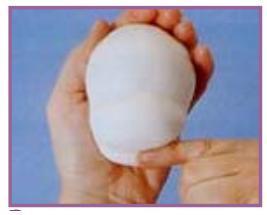 Primeiro use a quantidade de porcelana equivalente à metade de seu volume. Forre a esfera de isopor pressionando a esfera sobre a massa, segurando-a com a mão côncava e fazendo um movimento de vai e vem, enquanto com o polegar da outra mão faz-se pressão sobre a esfera.