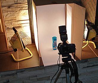 Após colocar o tecido já podemos pôr os focos atrás. O foco pode ter uma potência de entre 500 e 1000 Watts. Se não tivermos tecido podemos usar fólio tamanho Din A-3.