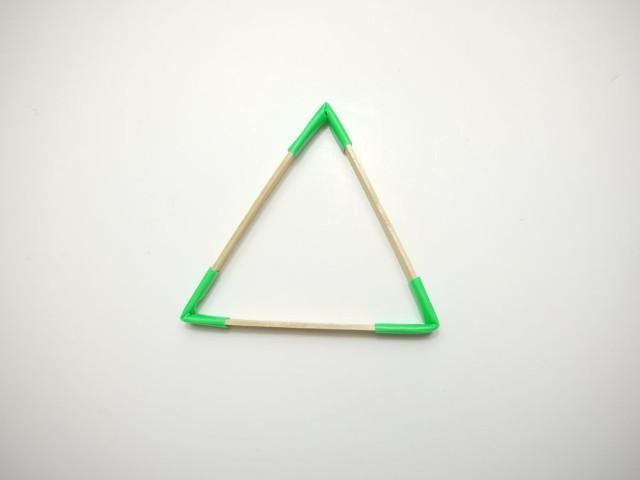 Dobre a peça em forma de triângulo e ligue as extremidades.