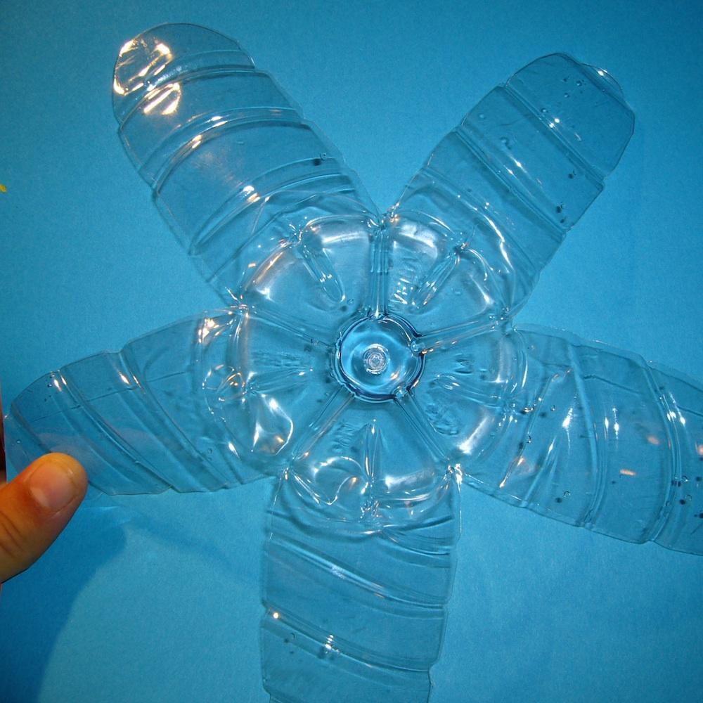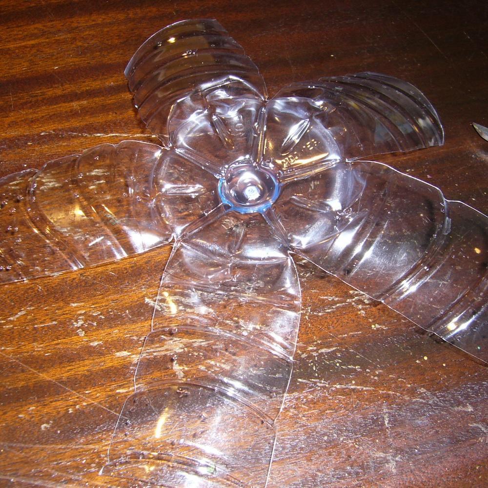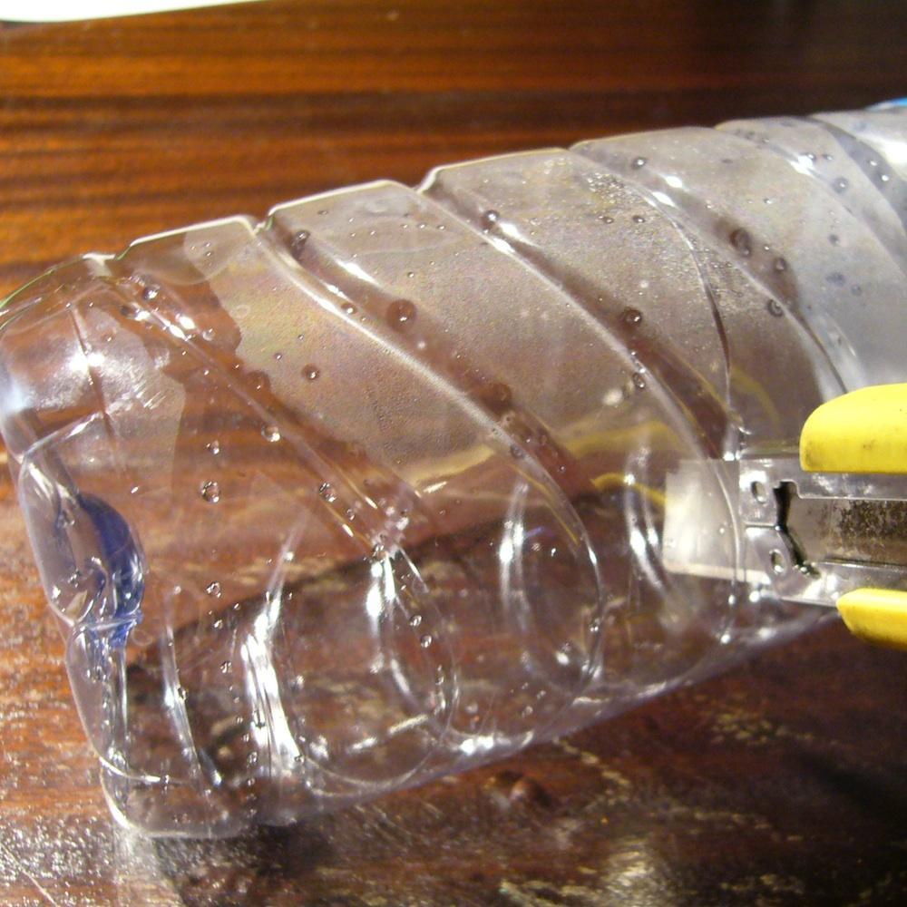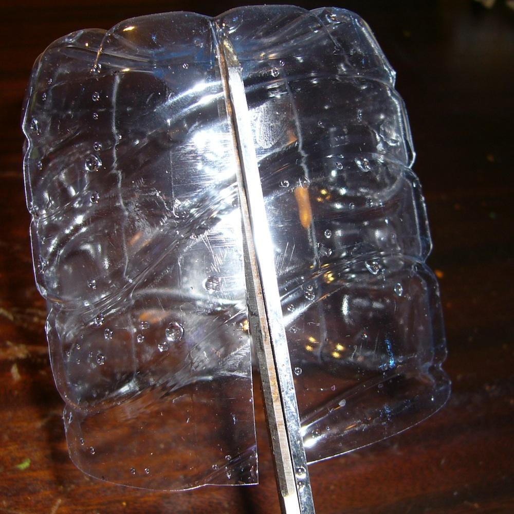 Abra e esmague os cortes que fez na garrafa de plástico.