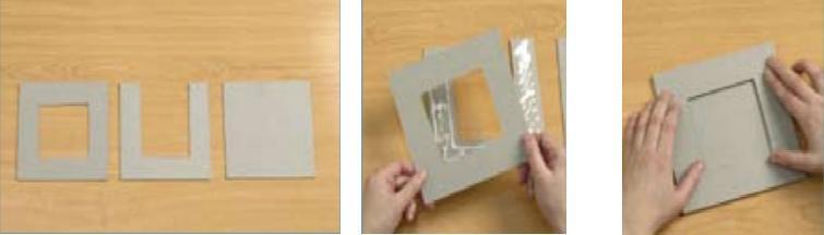 Antes de mais nada, corte três pedaços quadrados de papelão do mesmo tamanho, deixe um inteiro, esvazie o segundo fazendo um quadrado mais pequeno dentro e o terceiro terá forma de U. Cole-os um por cima do outro de maneira que o papelão em forma de U fique no centro.