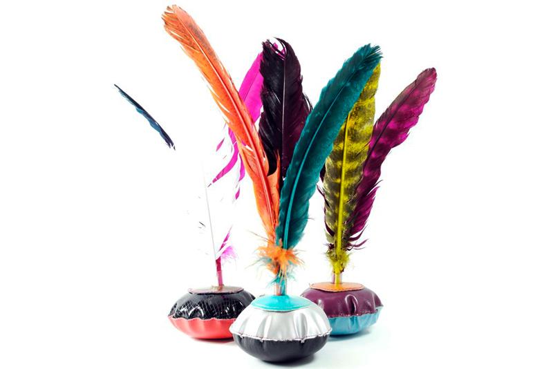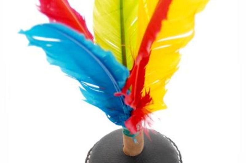 Nessa hora é preciso encher o interior da peteca com areia, sendo possível fazer uma canaleta de papel para facilitar o procedimento. Em seguida, finalize o fechamento da peteca com a costura. Já para colocar as penas é preciso colocar bastante cola no tubo e depois inserir em torno de 10 penas. Nesse processo, procure deixar as pontas das penas para fora. Depois que secar a cola, comece a brincar com a sua peteca.