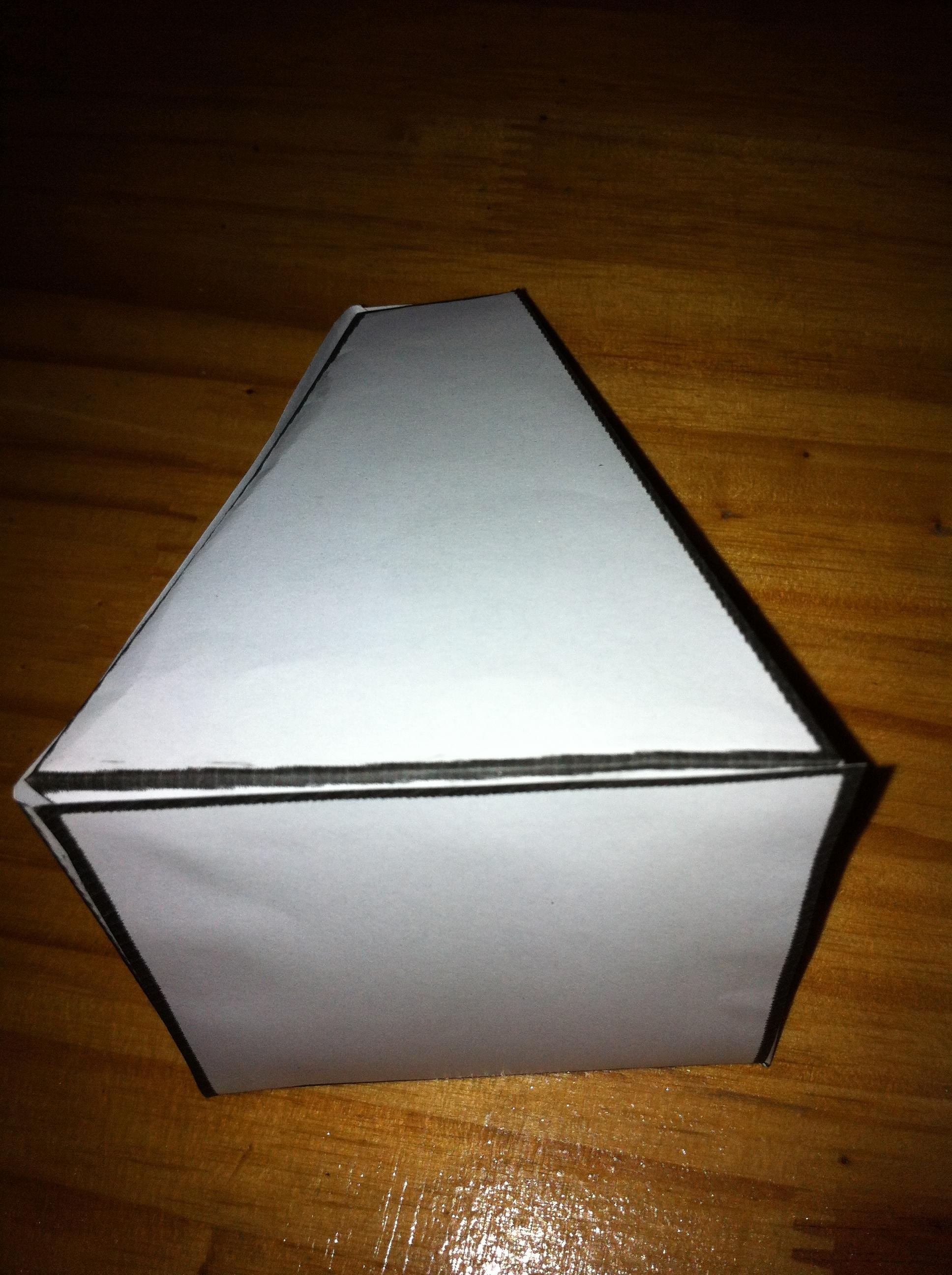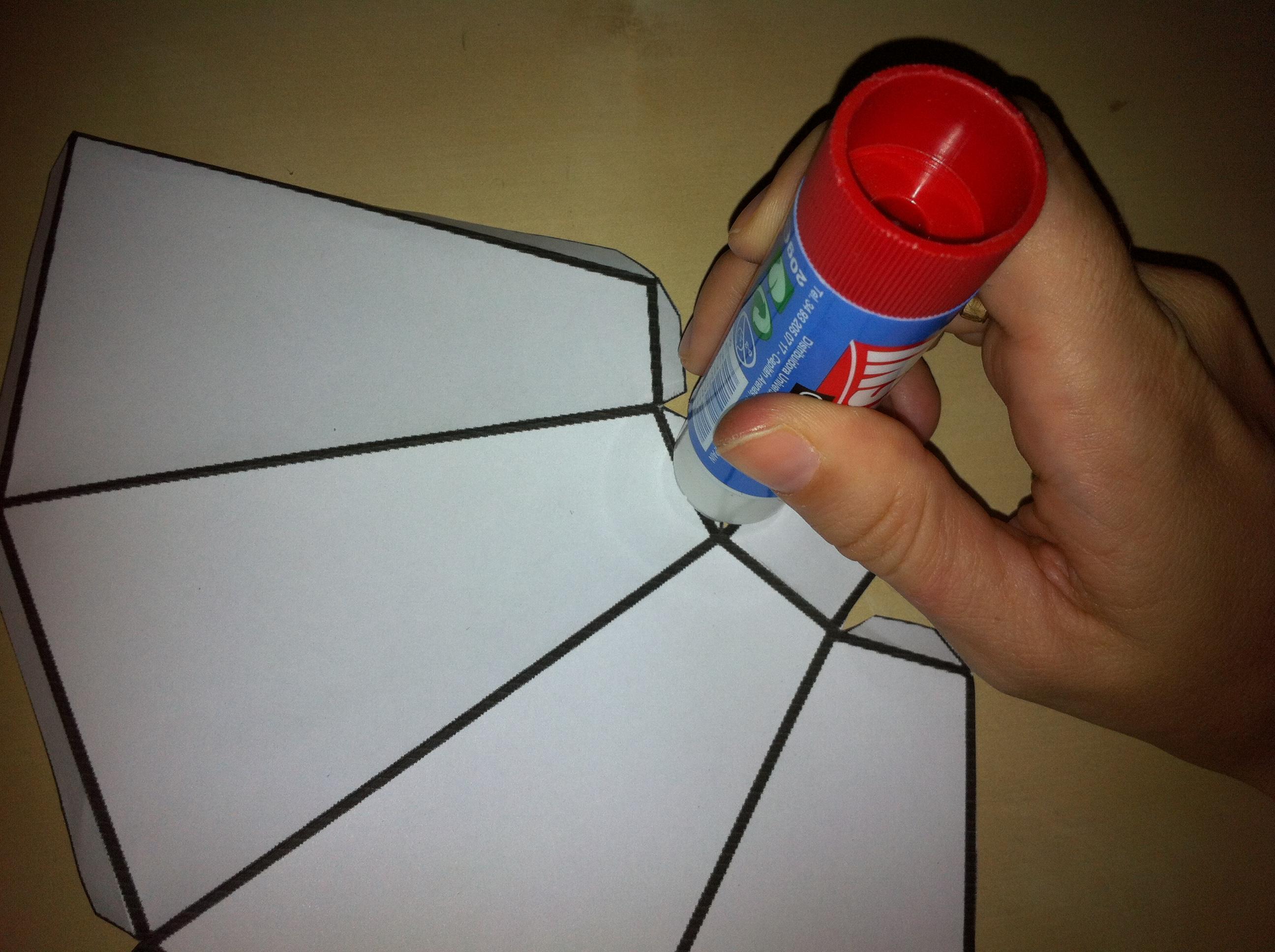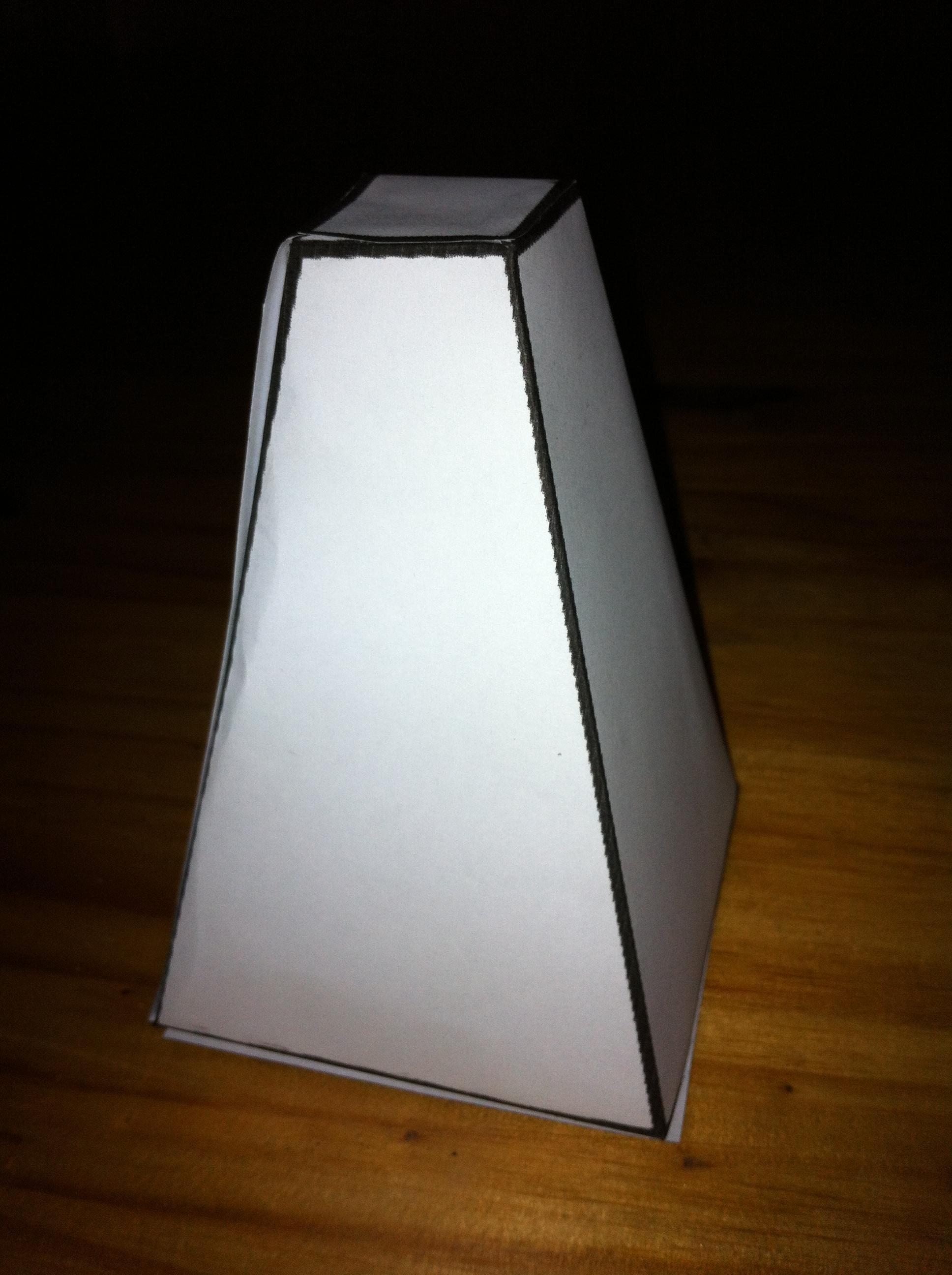 Dobre por todas as linhas da planta. Tente montar a pirâmide truncada antes de colocar a cola, para ter a noção do local onde fica cada pestana.