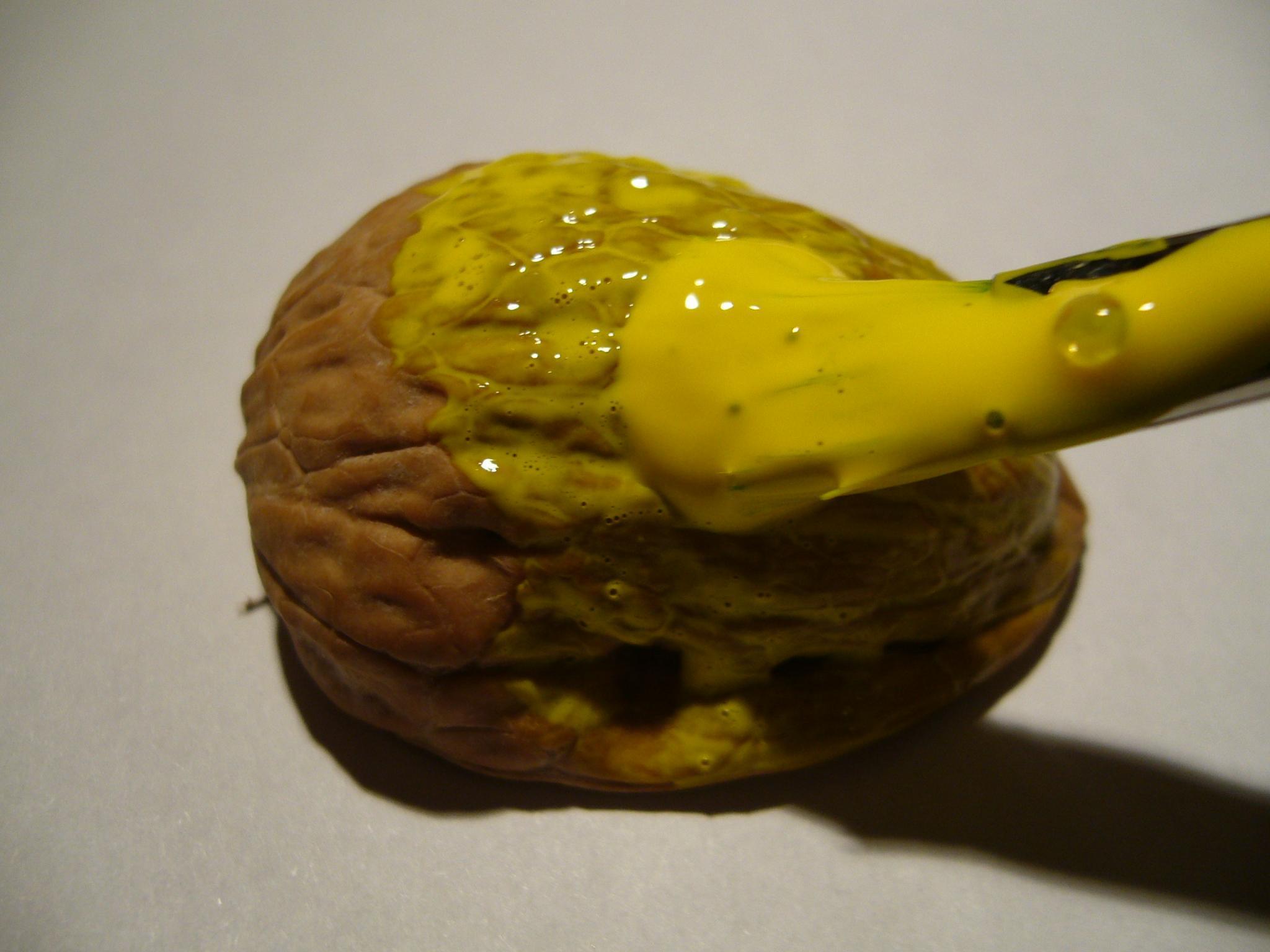 Pinte metade da noz de amarelo.
