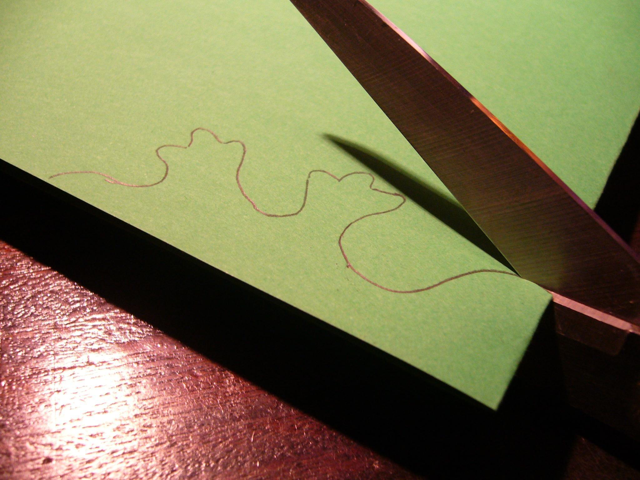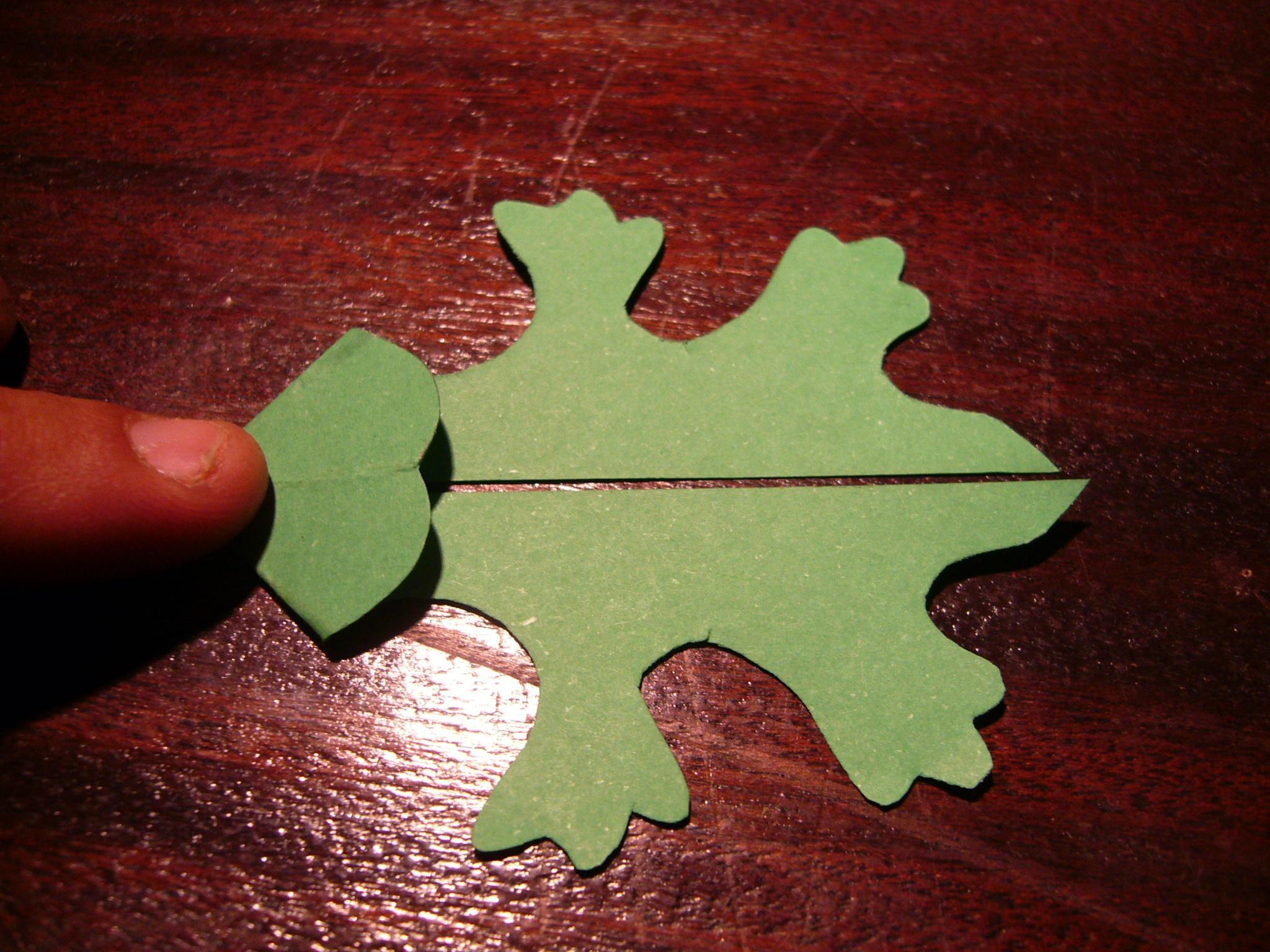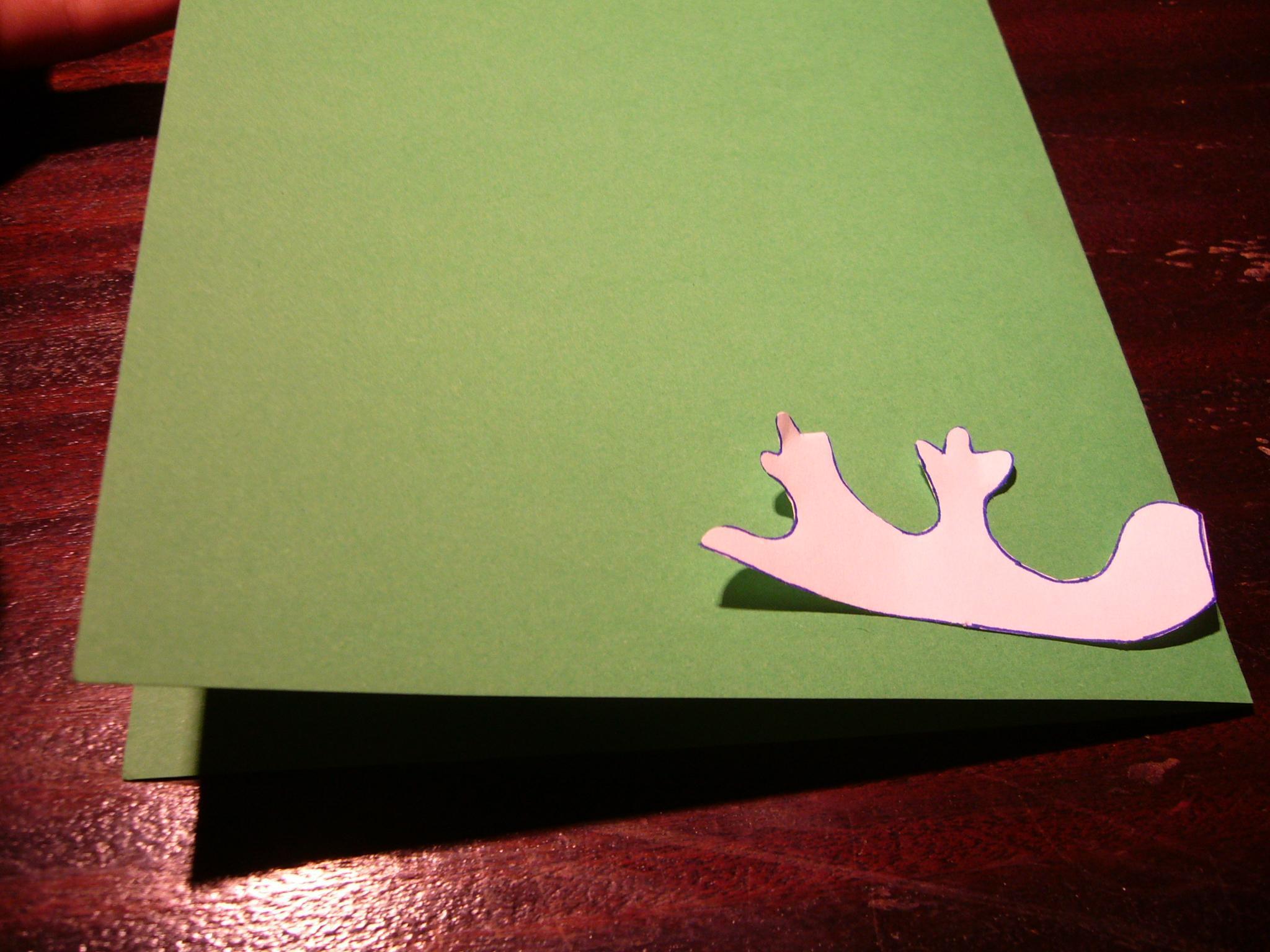 Dobre ao meio a cartolina verde. Em cima da cartolina ponha a base da cartolina que desenhou numa folha.