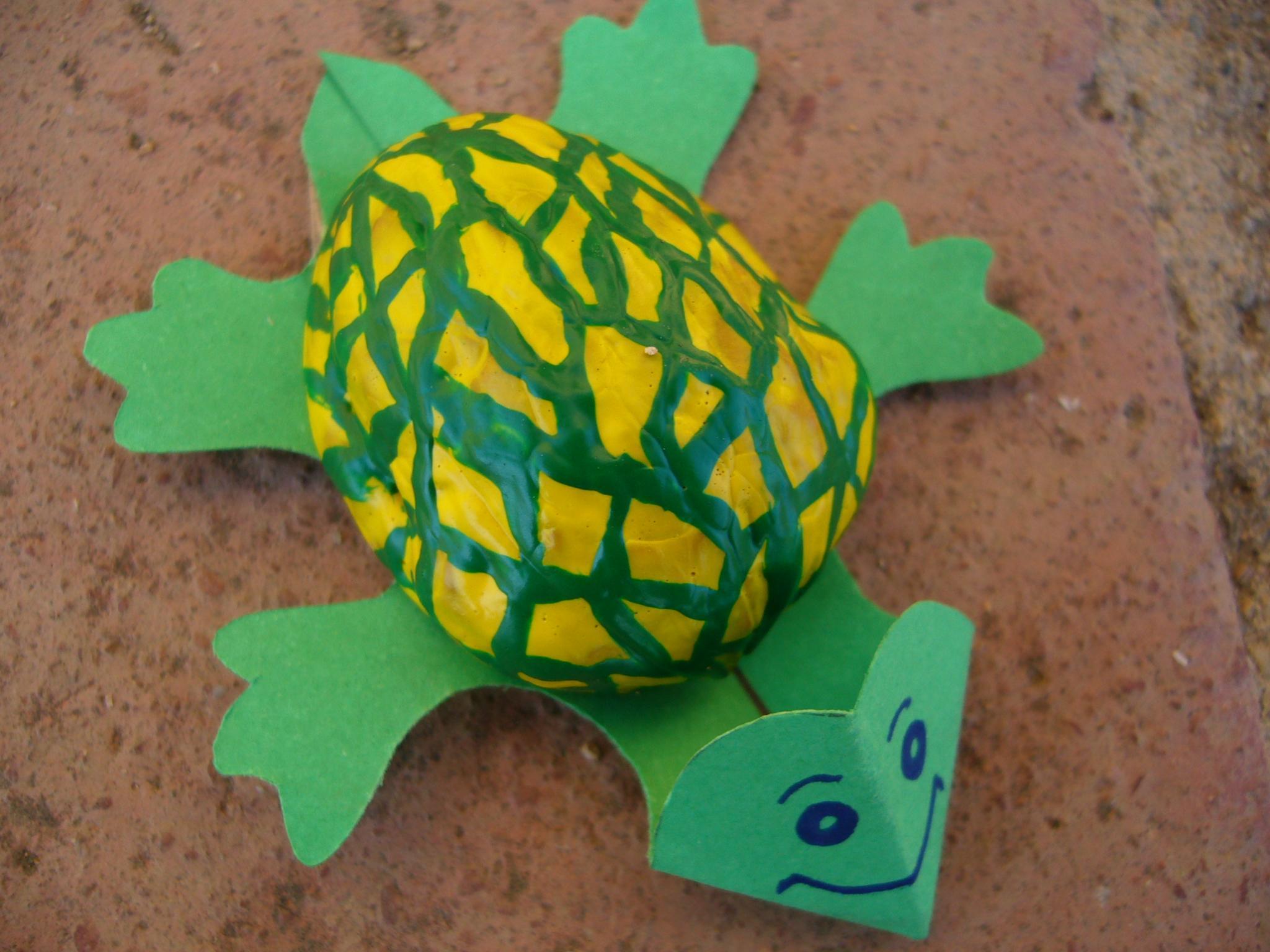 - Pode experimentar fazer tartarugas com nozes de diferentes tamanhos. Lembre-se que a base não pode ser maior que uma noz.