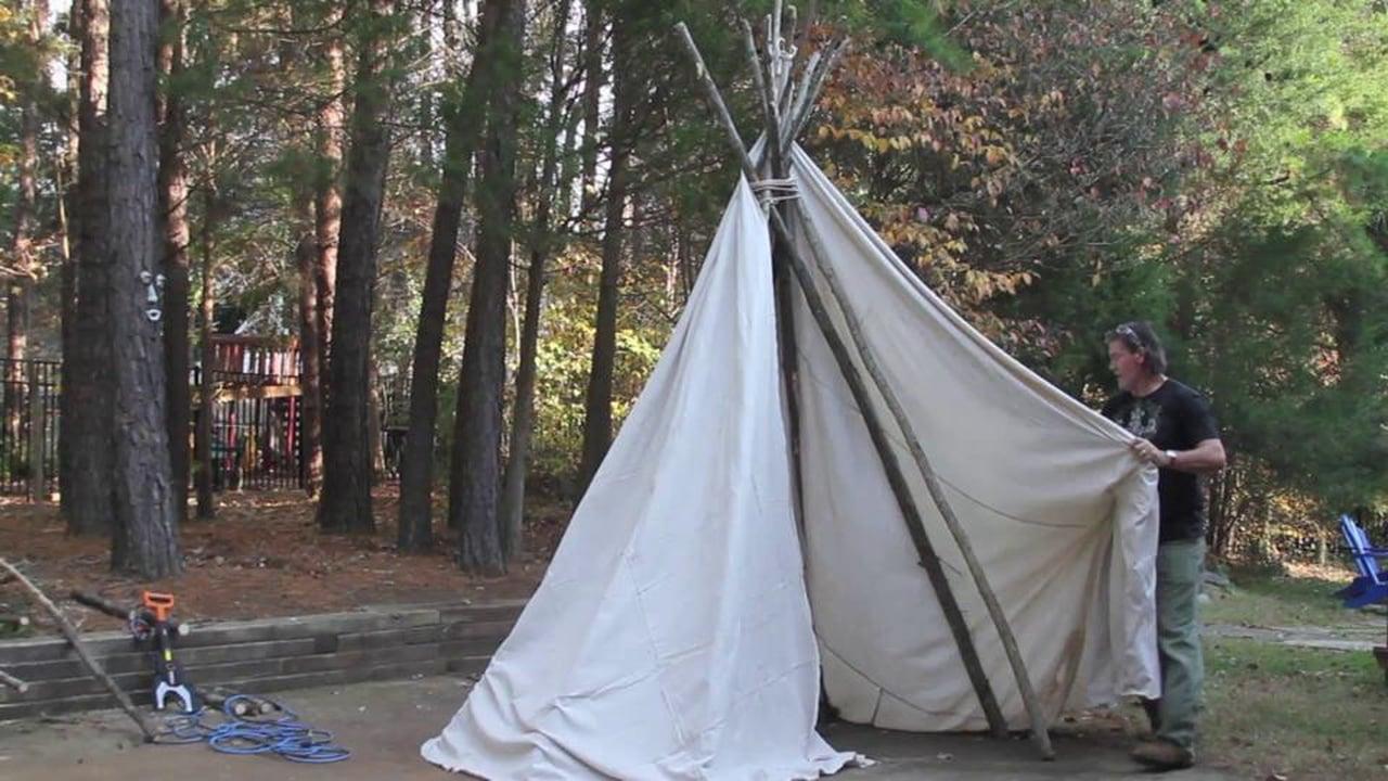 Se quer fazer uma tipi em tamanho grande, proporcionando uma experiência mais real saiba que também o pode fazer. Para isso vai precisar de 6 sarrafos de madeira, um pano com tamanho suficiente para cobrir a tenda e barbante.