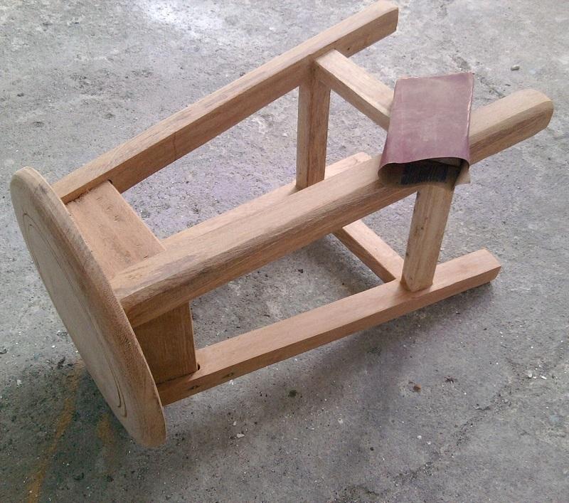 Pegue no seu banco de madeira e comece lixando-o, de forma a remover sujidades e fazer com que a cola que irá aplicar em seguida adira melhor. Quando tiver terminado, limpe o banco com um pano seco para remover a poeira.