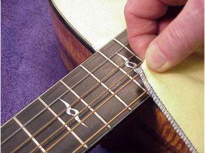 Cada vez que trocar de cordas, é aconselhável limpar as escalas com um pano seco e suave. Esfregue bem e tenha especial atenção na zona entre os trastes.