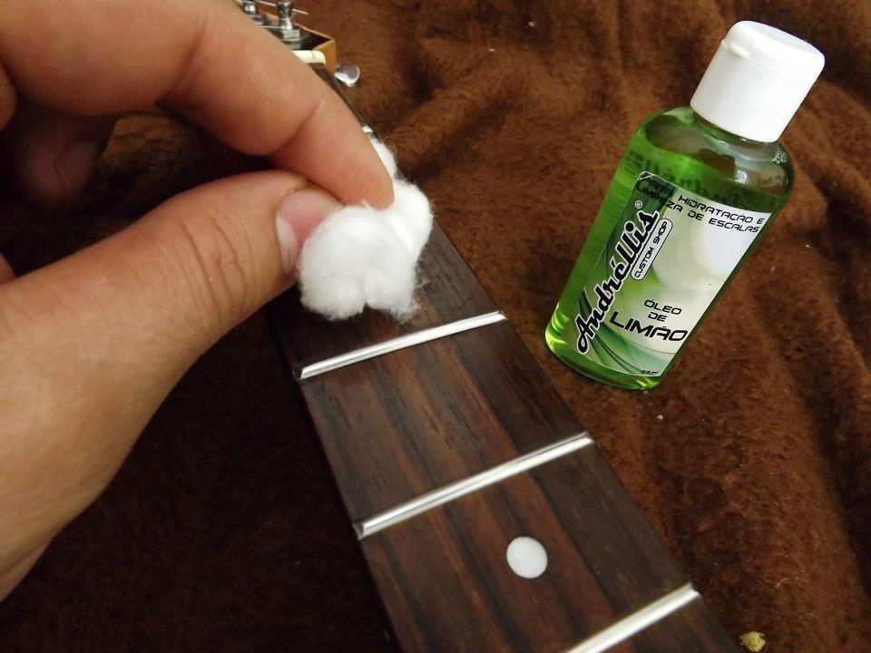 Caso o braço da sua guitarra seja de ébano ou pau-rosa, pode aplicar umas gotas de óleo hidratante (óleo de limão, linhaça ou de teca) cerca de 4 vezes por ano para hidratar a madeira. Basta apenas aplicar algumas gotas de óleo. Lembre-se que, em braços de maple não é necessário óleo hidratante.