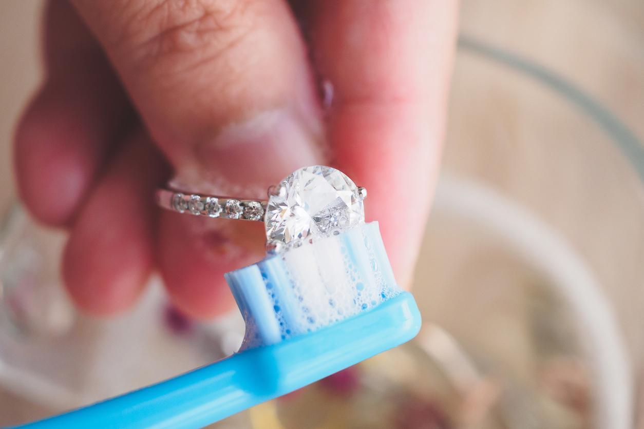 Essa técnica é muito eficaz para alcançar os cantos mais difíceis de limpar. Ela também funciona para limpar aneis, colares e brincos.