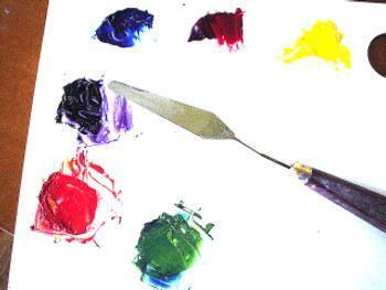 Para conseguir outras cores que não sejam secundárias devemos selecionar uma quantidade qualquer de cor primária, e a seguir colocá-la sobre uma parte limpa da paleta. Enxágue todos os restos de pintura do pincel. Para finalizar misture com qualquer outra cor (ou combinação de cores) em diferentes quantidades, para criar variações de tons secundários e terciários.