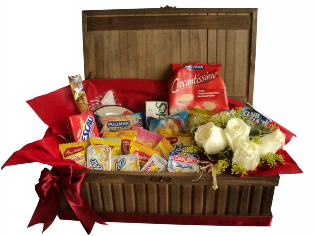 Outra opção possível é usar um baú, o resultado ficará ainda mais elegante e a pessoa vai poder usá-lo depois e sempre se lembrar do seu presente.