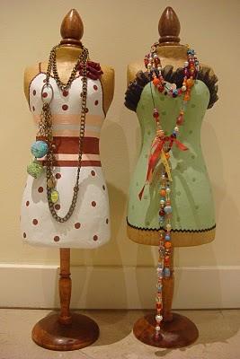 Em bibelôs. Bibelôs e estatuetas na decoração parecem coisa do passado, no entanto eles se relevam muito úteis na hora de organizar suas bijuterias! Use um bibelô que tenha em casa ou adquira um de que goste e com a altura ideal para colocar suas bijuterias, depois é só pendurar os colares, braceletes e anéis nele, de acordo com a forma como o objeto permitir. Como alternativa procure por figuras porta-anéis ou porta-colares.