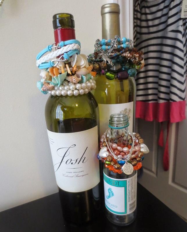 Em garrafas. Sabe aquela garrafa de vidro que você está prestes a jogar no lixo? Em vez disso lave-a bem e coloque-a sobre a cômoda para acomodar suas pulseiras, braceletes e relógios! Pode usar uma garrafa de vinho, de água, de cerveja ou de outra bebida, desde que seja de vidro. Para a disfarçar ou embelezar, pinte-a com tintas para vidro ou cole tecido em redor dela.