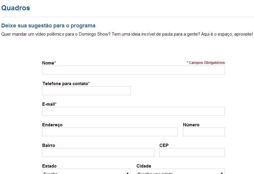 Em seguida siga este link e preencha os campos em branco com as informações pedidas, incluindo o vídeo e a sugestão que você escolheu previamente.