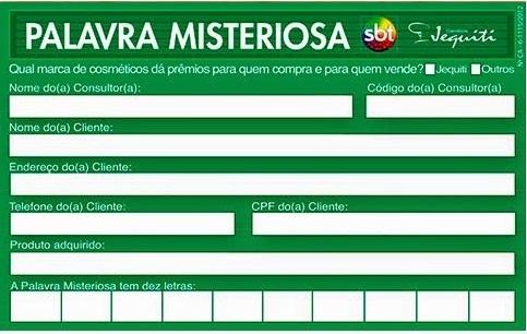 No final do programa, há mais uma chance de ganhar mais prêmios com a "Palavra Misteriosa". Na Palavra Misteriosa, a cada R$10 em compras de colônias Jequili, o cliente receberá um cupom para participar juntamente com o seu consultor. Esse cupom deverá ser preenchido com os dados do cliente e do consultor, com o nome do produto comprado e com a sugestão da palavra.