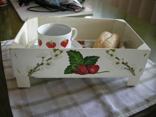 Outra ideia ótima para reciclar as caixas de morangos e dar um novo uso muito funcional a elas é convertê-las em bandejas de cozinha que servirão para transportar copos, canecas, pratos e outros utensílios entre os cômodos da casa.