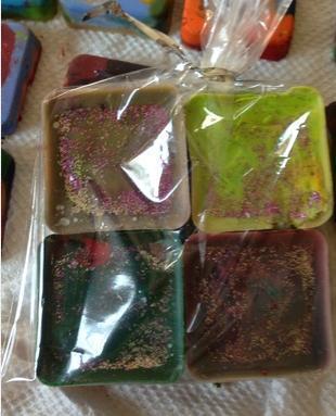 Desenforme as cores e já estarão no ponto para serem utilizadas para pintar o que quisermos. É assim fácil e divertido reciclar giz de cera velhos.