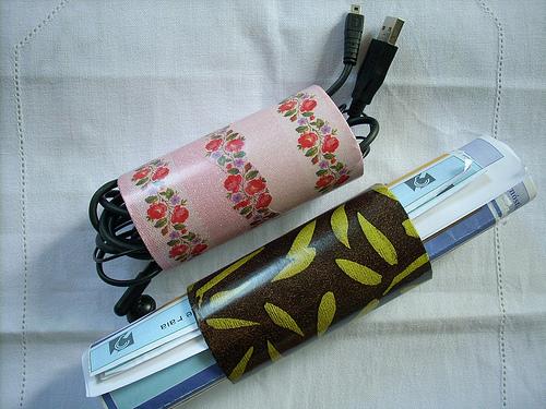 Organizador. Mantenha enrolados e arrumados cabos e fios como os de carregadores de computador e extensões elétricas com a ajuda de um rolo de papel, ao inseri-los seu interior deste; faça o mesmo com revistas e veja como, de forma muito simples e econômica, você consegue manter sua área de trabalho em ordem!