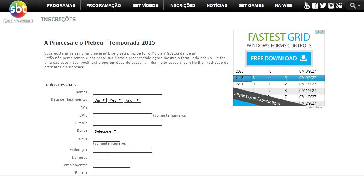 Agora você deverá preencher o formulário de inscrição com os seus dados pessoais, nome, RG, CPF, e-mail, CEP, endereço e telefone.