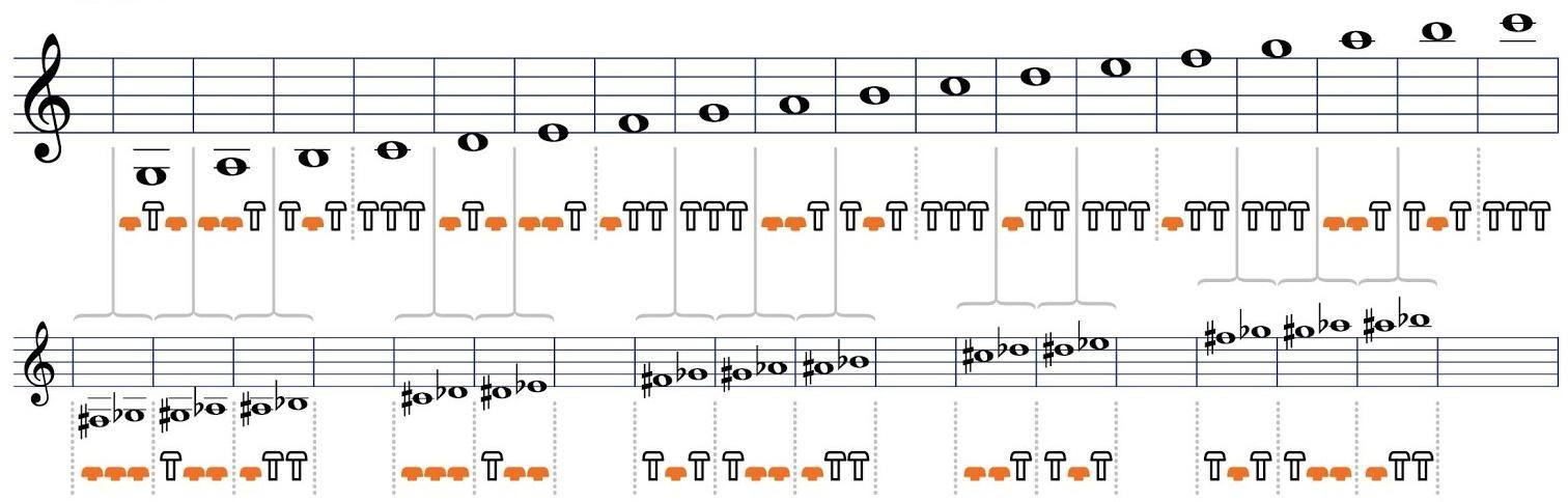 De acordo com a nossa escala natural, temos como primeira nota um Sol - com o pistom 1 e 3 fechados.